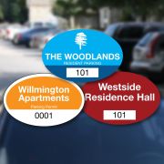 Perzonalized sticker parking permits serve as an efficient tool to ensure only authorized vehicles park on your parking lot. Easily distinguish non-authorized vehicles in your lot. Our Oval Custom Parking Permits can be customized with your facility's name, a logo and color of your choice. Can be used anywhere on the inside window of vehicle.